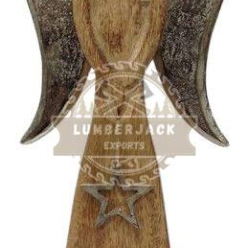 Rustic Wood Angel Figurine with Heart & Star Charms